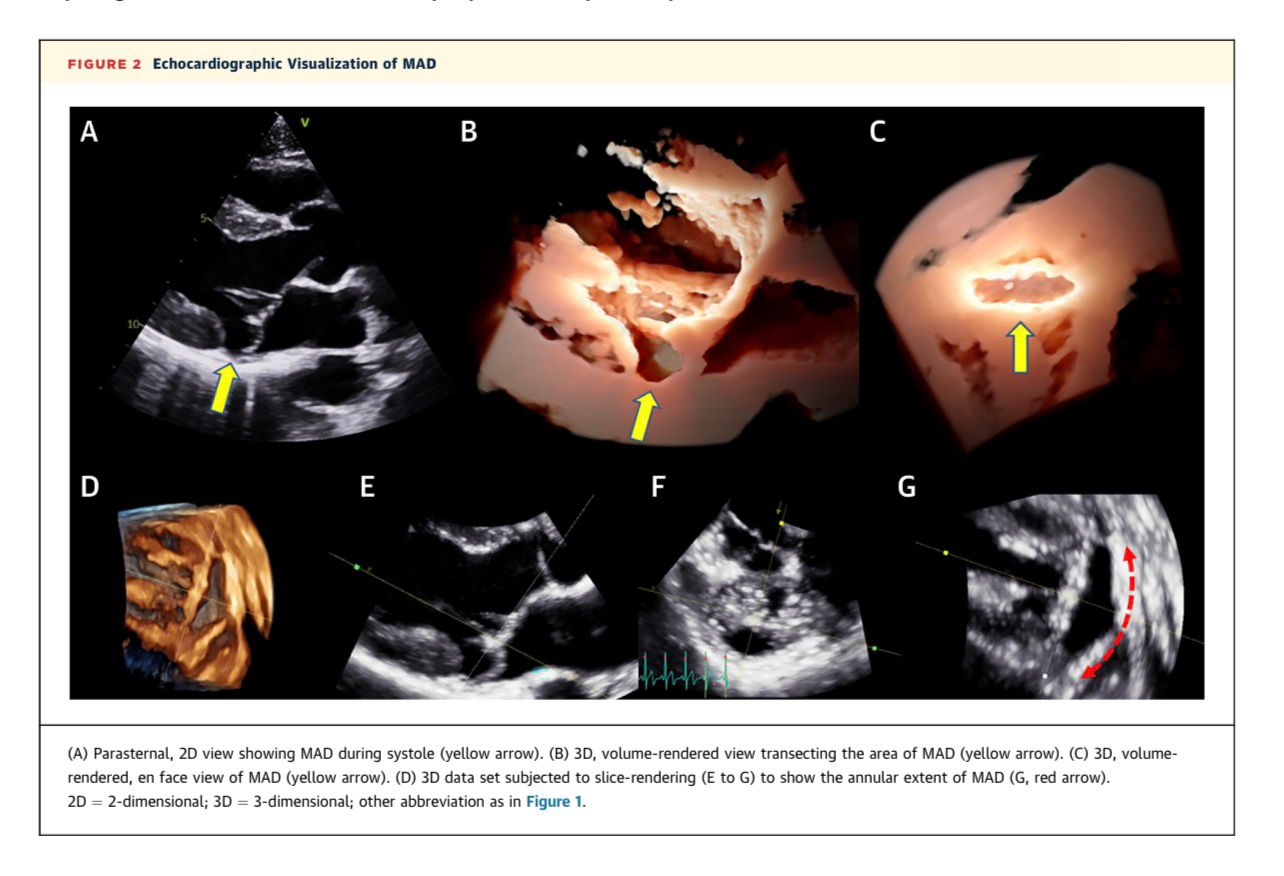 Mitral anulyar dislokasiya (Mitral Annular Disjunction, MAD), sol atrium/mitral qapaq anulusu ilə sol mədəciyin miokardı arasında yaranan ayrılma kimi xarakterizə olunur və aritmiyalı mitral qapaq prolapsı olan xəstələrdə tez-tez müşahidə edilir.